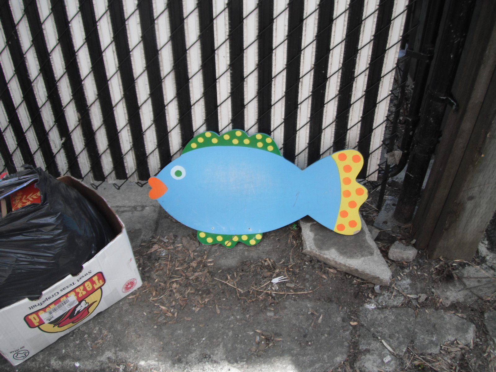 I found this fish in the alley next to Parc, between St Viateur and Bernard. It was with some other kid-type stuff.