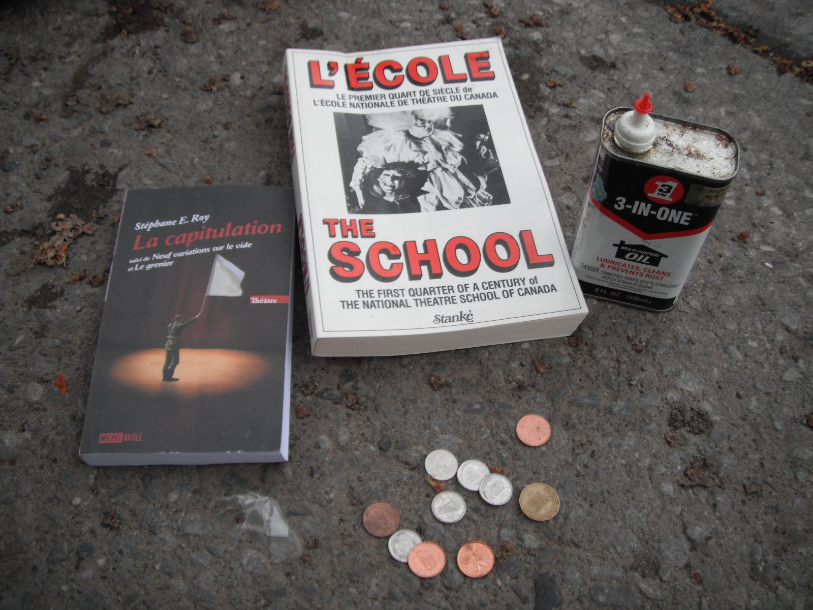 I opened up a bag on St-Denis and found a few decent looking books, some oil, and a decent chunk of change (54 cents, and a 50 cent(avos?) piece from Mexico. At some point when I was looking through these bags a few kids were yelling something at me about me involving the word “poubelle” (garbage). They seemed to think they were pretty cool, and the tone of their voice wasn’t particularly pleasant. I ignored them outright, I’m happy to say. Not even a turn of my head.