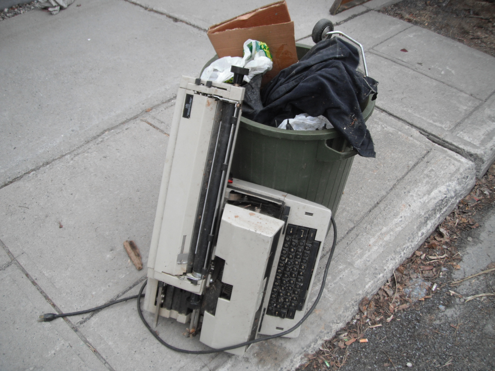 I found a nice working electric typewriter maybe a week ago, before I started the blog. This one didn’t look so hot. Pretty damn big through. Might get you some scrap metal money, if you have a truck. When I was looking at this, someone came over from across the street and offered me some big metal gates. I don’t really have a need for them (again though, probably good for scrap metal). He was pretty nice, and we had a brief conversation about garbage. He proudly stated that he’s sold a few things he’s found on the street on Kijiji. Welcome to the club, buddy. He had two cute kids with him too. He liked the art I found (last two images), and his daughter said that it would clean up fine. They seemed like a great family: they radiated good energy, and lacked even a whiff of pretension.