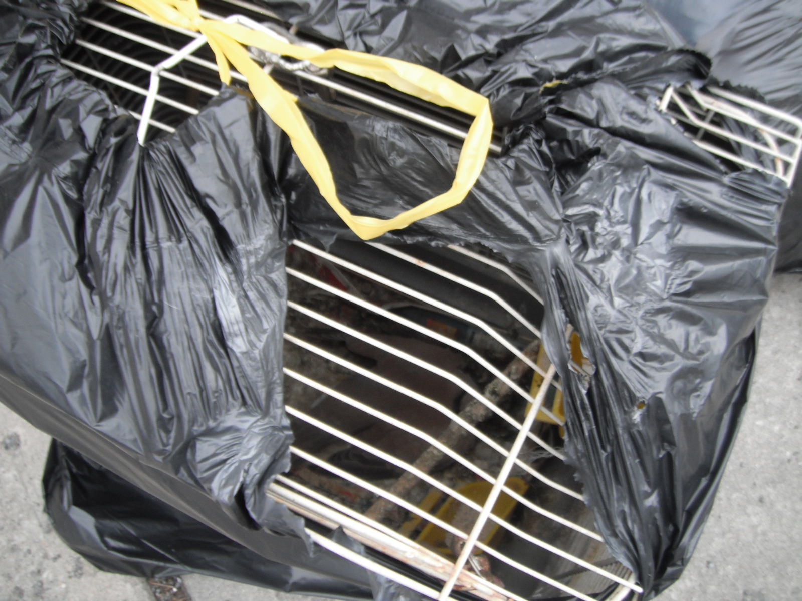 Now for the grisly bit. I considered not posting this for a millisecond, but I want this to be a flowery, fluffy garbage blog all about the antiques and awesome stuff you find, without mention of the occasional off-putting grit of the everyday. Anyways, above is a bird cage. The bag was already torn when I got there, and I couldn’t resist the temptation to look inside.
