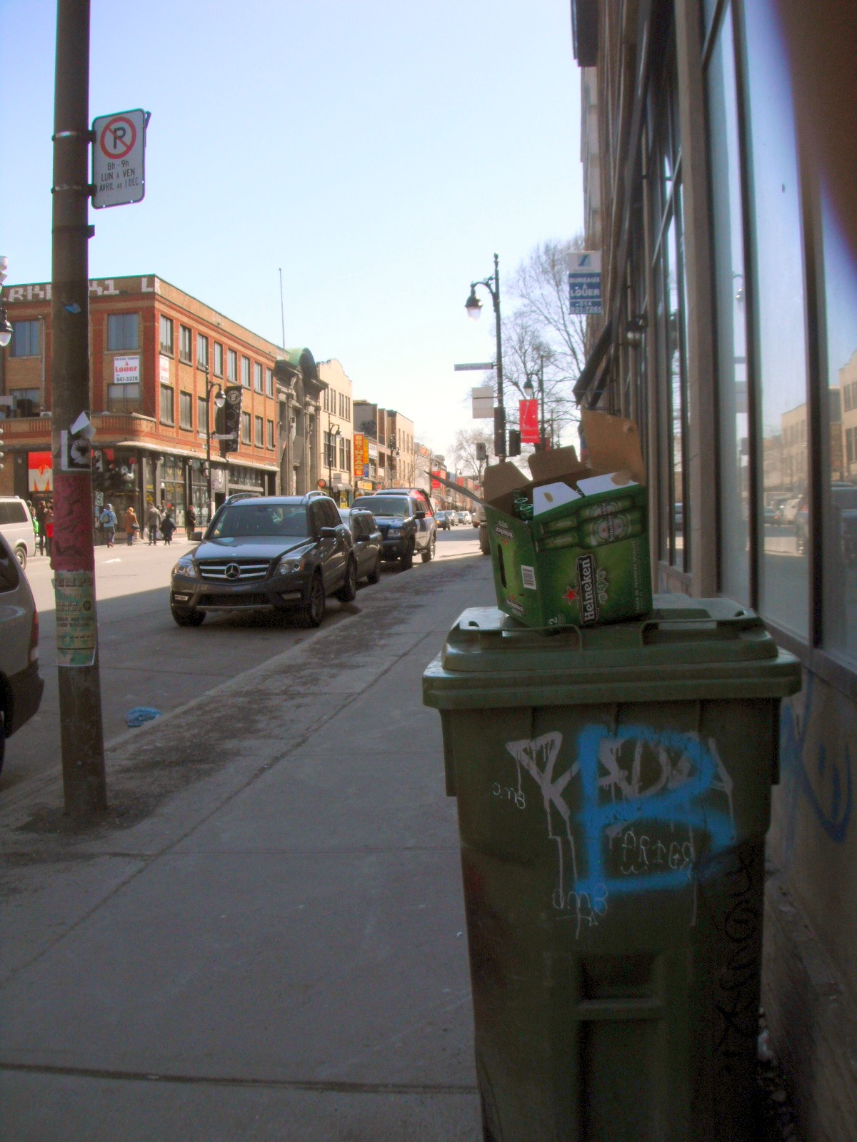 I took Karma on… garbagefinds 14 years ago I took Karma on a little walk just now. I found a case of empties (well, one was missing, so 11) on top of this recycling bin on Mont-Royal / St Laurent. I brought them in to the Provigo around the corner and made a cool 1.10 profit. Omg, right? Share this: Click to email a link to a friend (Opens in new window) Email Click to share on X (Opens in new window) X Click to share on Reddit (Opens in new window) Reddit Click to share on Facebook (Opens in new window) Facebook