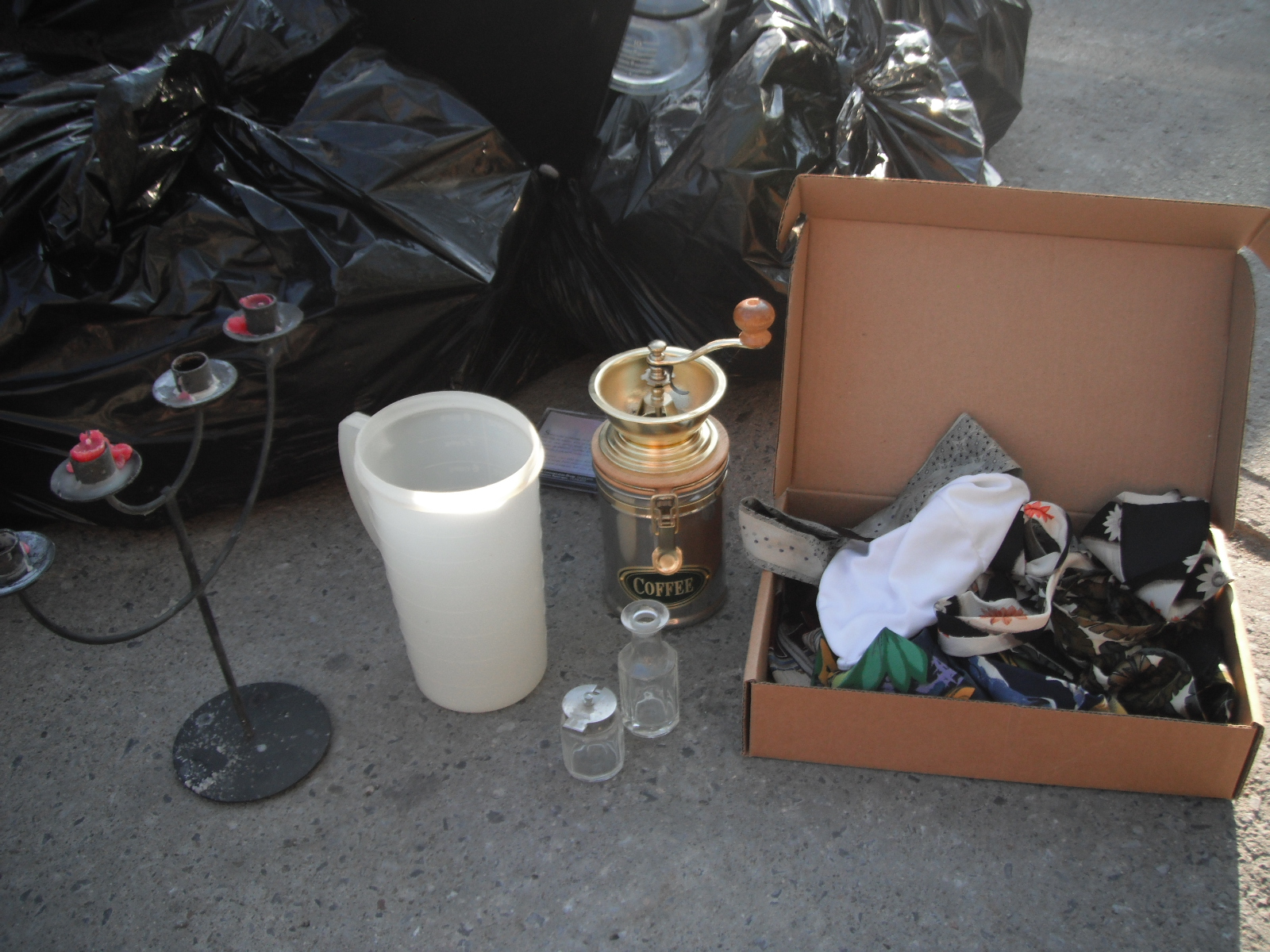 I found this stuff on Esplanade between Laurier and St Joseph. The coffee grinder is pretty cool. We tried it out last night, and it actually makes a pretty fine grain. I traded it to my roommate for 10$ off future bills. Garbage profit! This garbage was all pretty clean. Classic spring cleaning. The box of ties is sweet too.