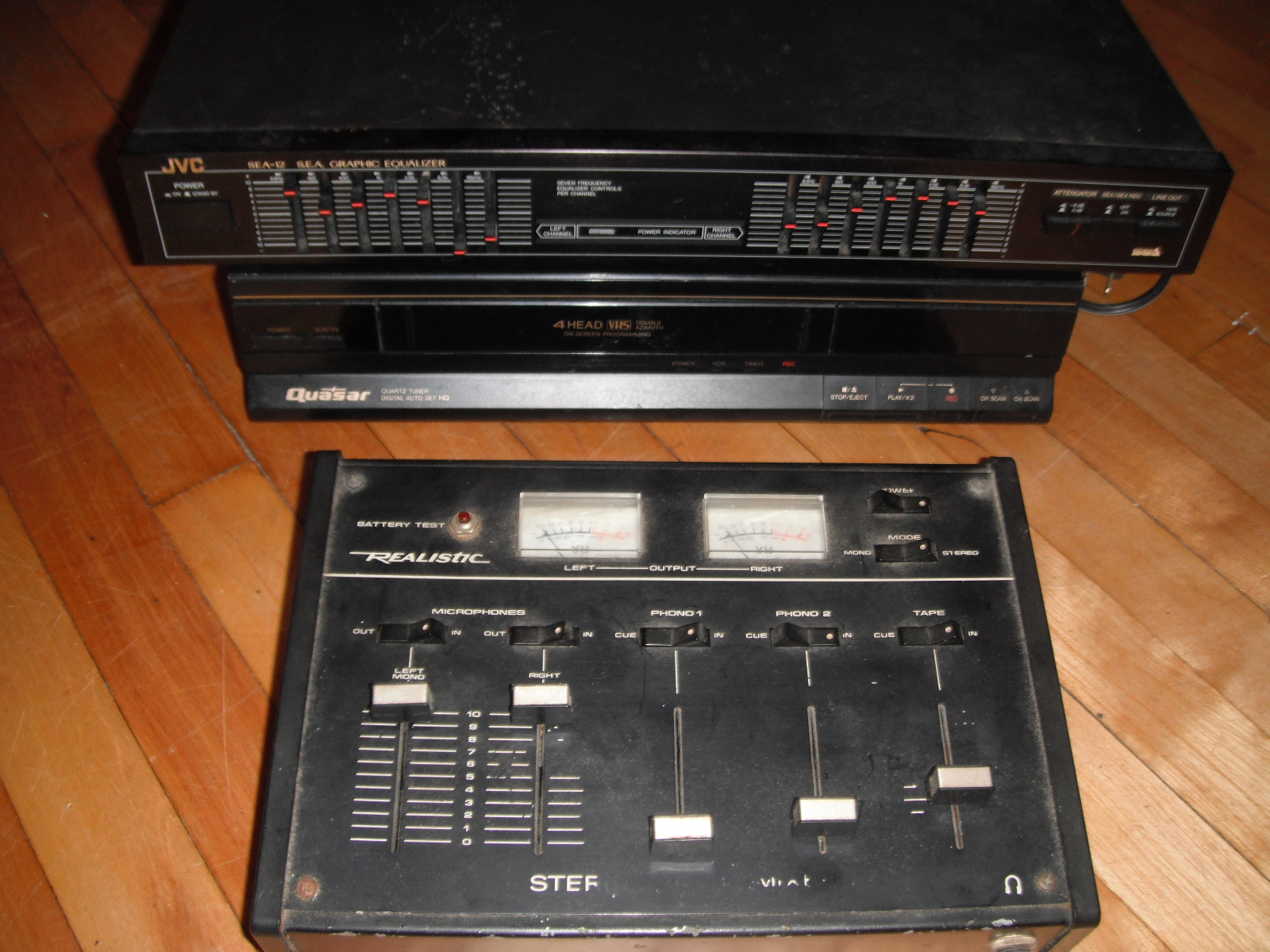 It was a pretty dry night last night, but I did come home with these old-school electronics. They all came together in the same bag, which makes me think they may work, but I don’t have the time to test them now. I’ll stash them in the basement for when I get back.