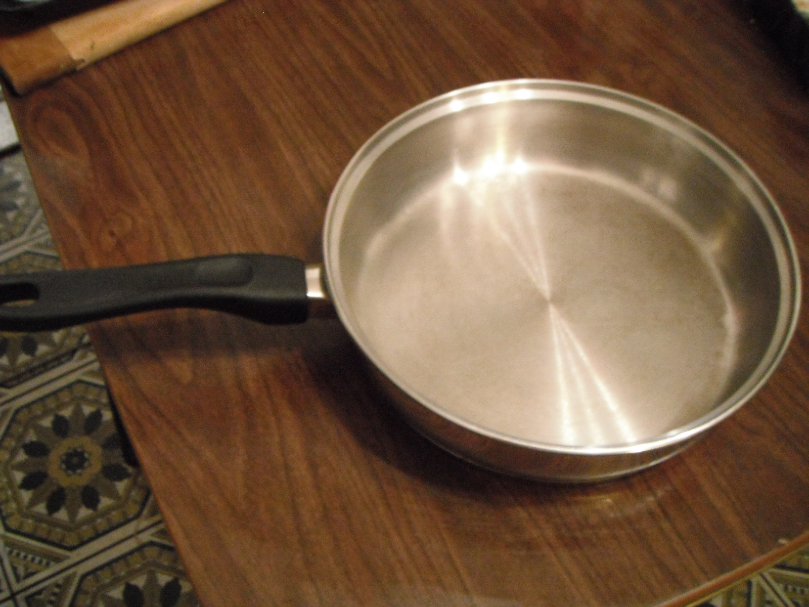 Here’s the “after” picture. It’s more or less like-new. It’s stainless steel and has a “Cooks Quarters” marque. Pretty decent quality pot by the looks of things. This is when having a strong stomach pays off.