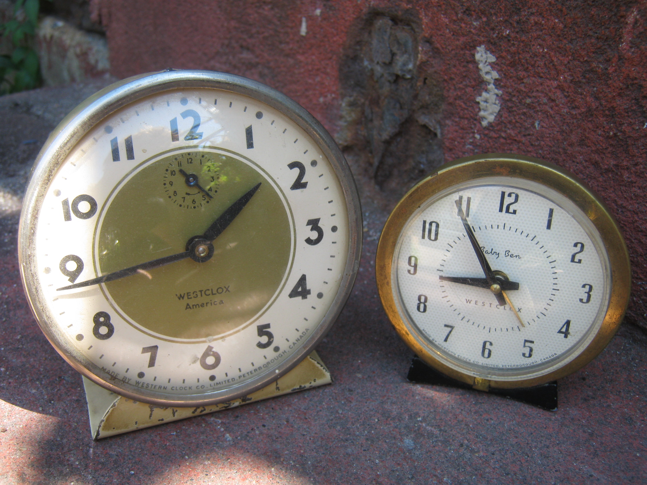 A couple of beautiful old alarm clocks. Neither really wound, but I figure someone might have an interest in fixing them. I left them out “for free” in my yard sale and they’re both gone, so that’s good.