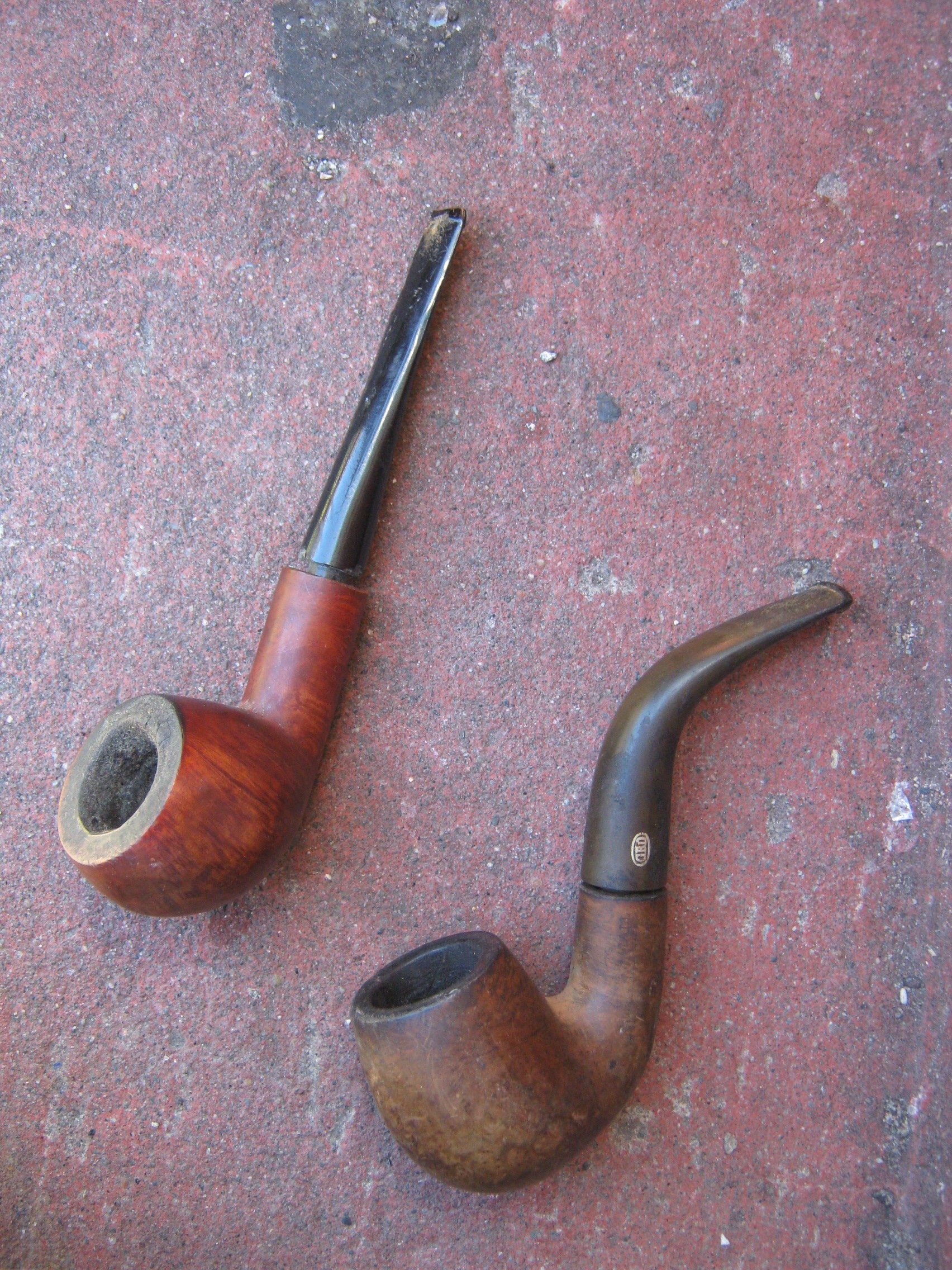 A couple of old wood tobacco pipes. The stem on one is cracked, but that’s probably easily fixed.