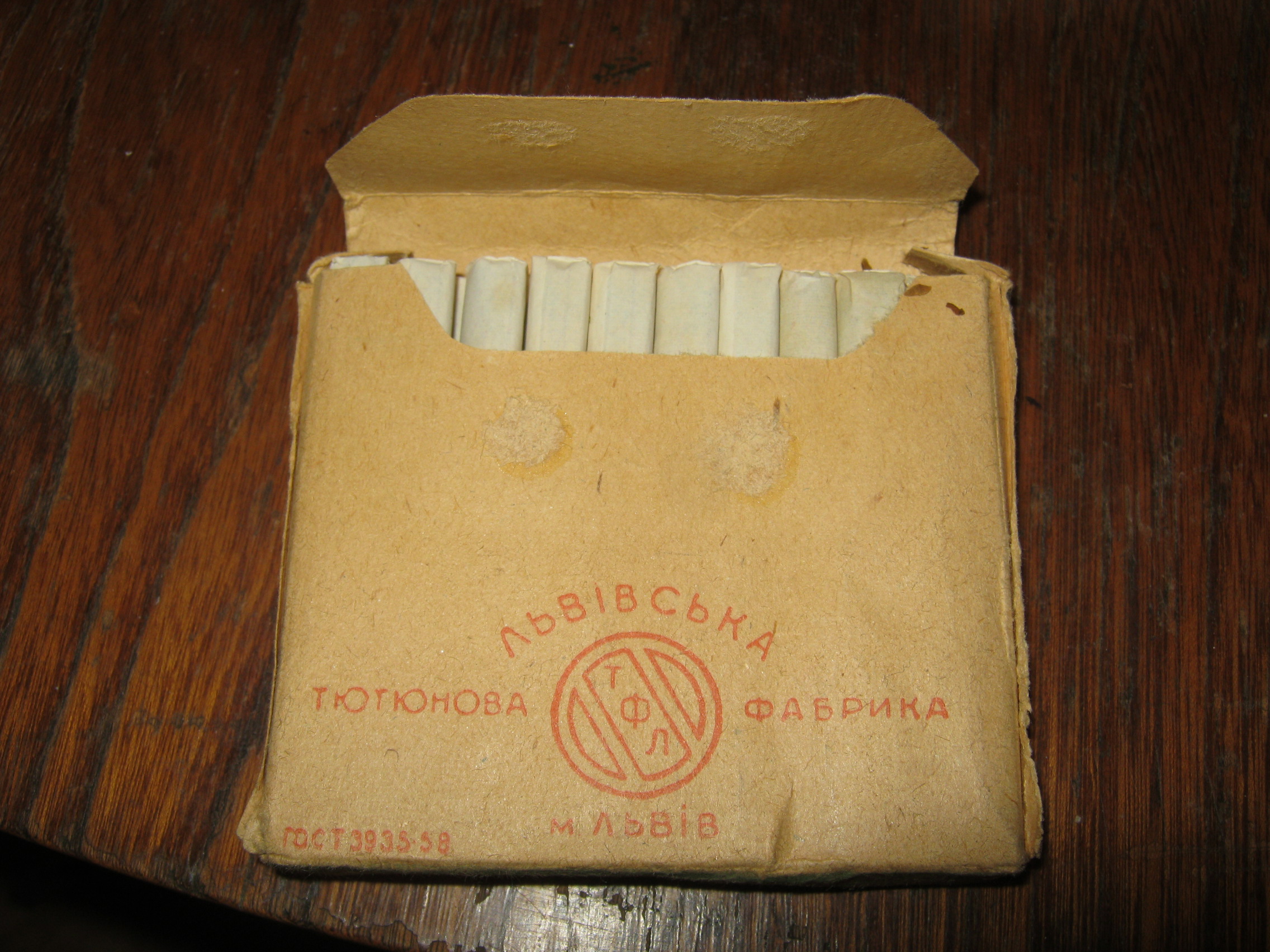 An ages old pack of cigarettes. Cigarettes included. Definitely from Eastern Europe, possibly Russia? It’s in really good shape, so maybe it’d be really good as a prop for a movie. Maybe you could smoke them, but they don’t smell so hot.