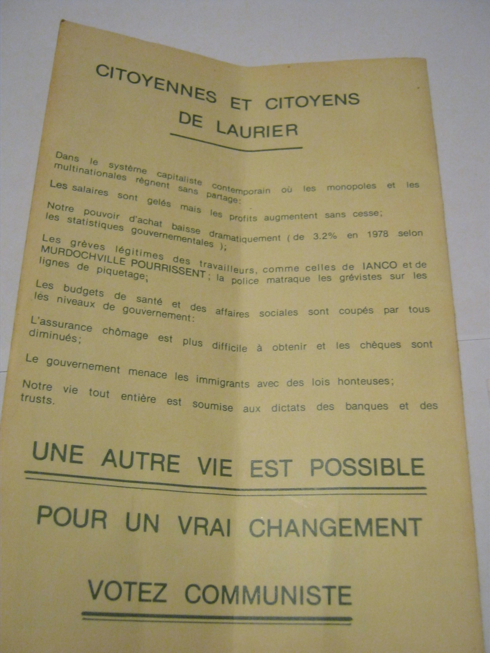 As for the guy on the pamphlet – Guy Desautels – he ran as a candidate for the Communist party in my area of Montreal in one federal and one provincial election before seemingly disappearing from politics.