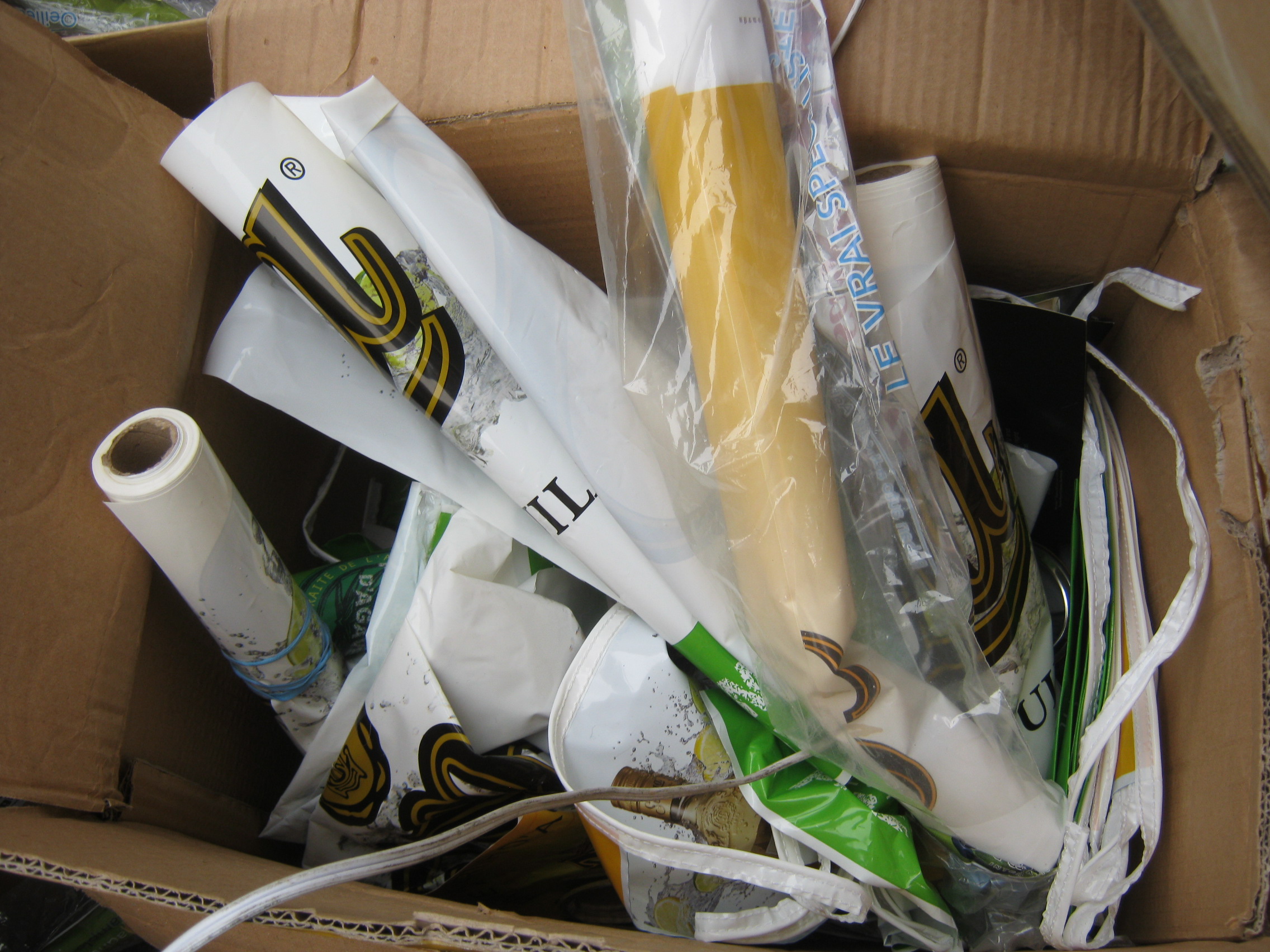 Another box was mostly full of these plastic posters you see at bars. They look unused. I think these might actually be useful for sealing/insulation, as the stuff is pretty strong and thick.