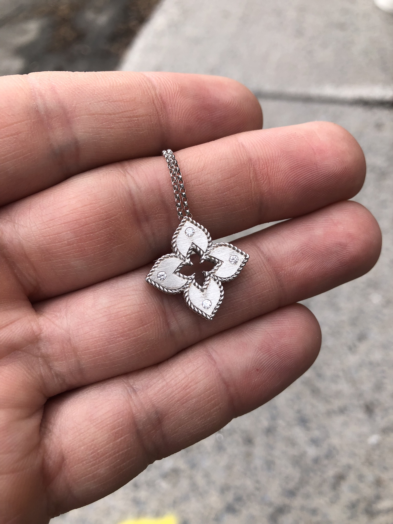It turned out to be a Roberto Coin 18k necklace/pendant, which retails for about 1800$ at Birks. I tested the gold as well as the diamonds, and it checks out. It also just feels like a quality piece. Anyways, this was my best McGill-related find since that MacBook Pro I found way back in 2016.