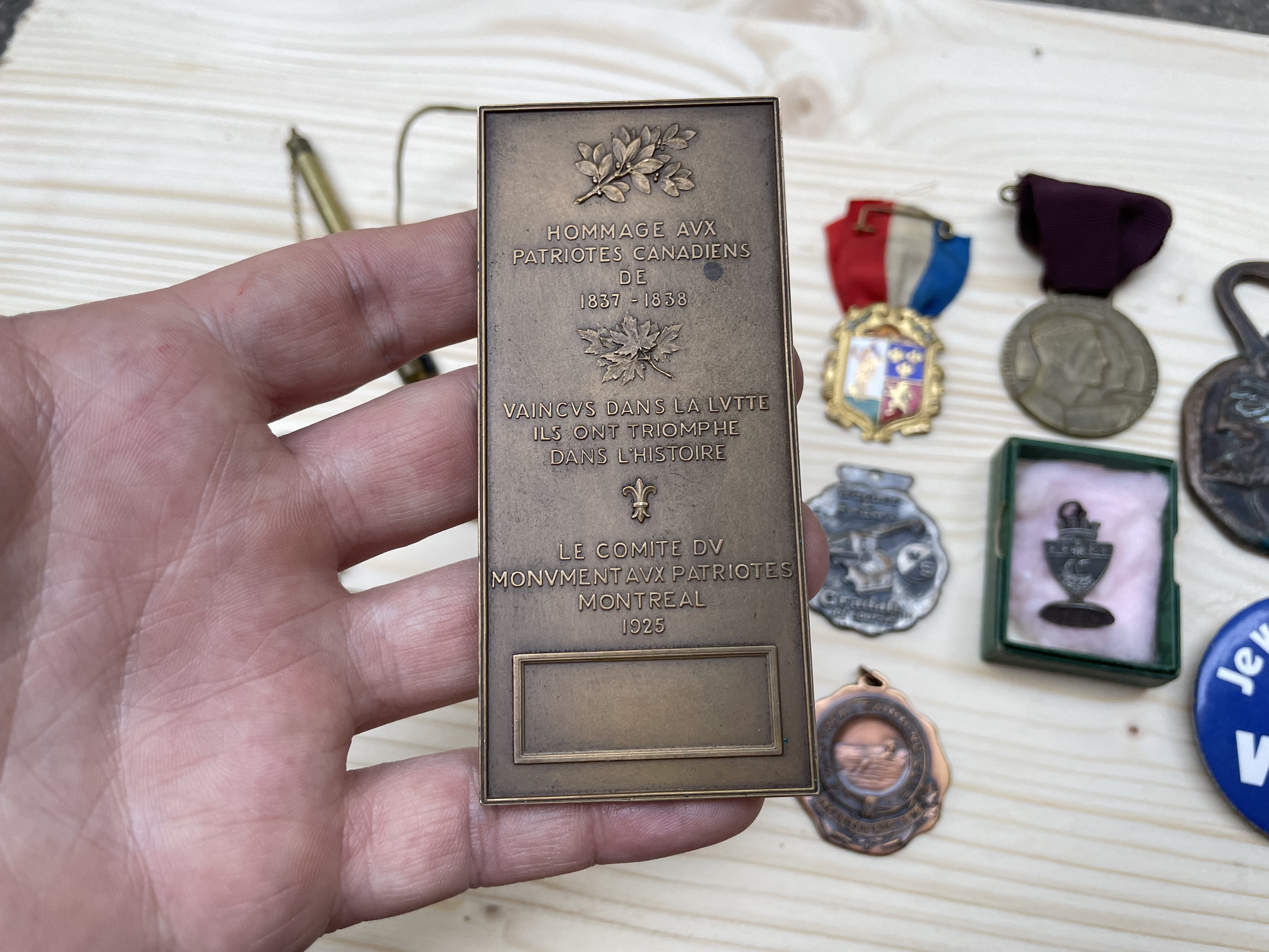 The medals were pretty neat. The colourful enameled badge was purportedly made for the 50th anniversary of the Société Saint-Jean-Bap