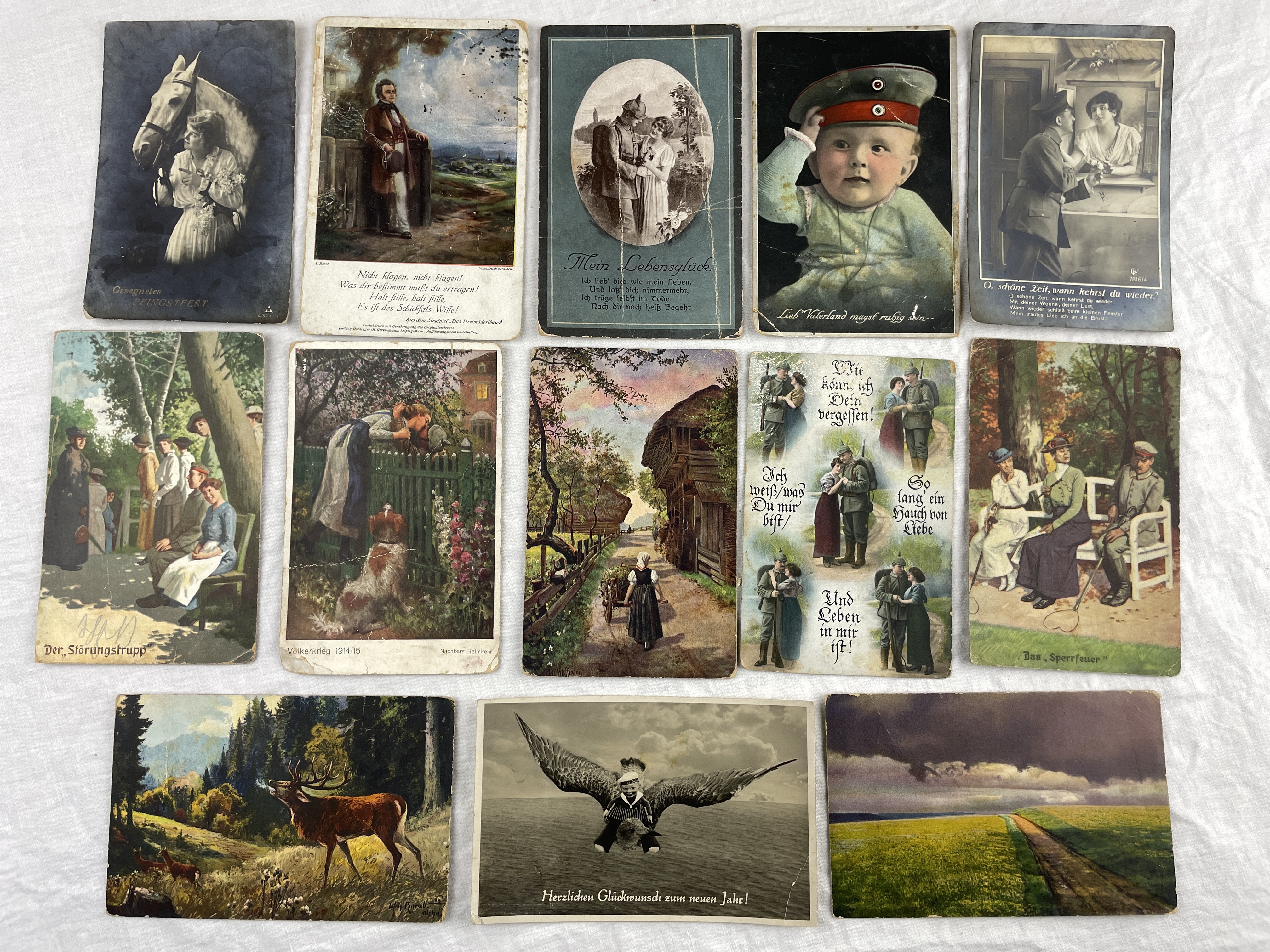Back to circa World War I. Here’s a bunch of regular postcards. These are very much from another time, which is an obvious thing to say given that they’re about 110 years old. Zoom in for a closer look!